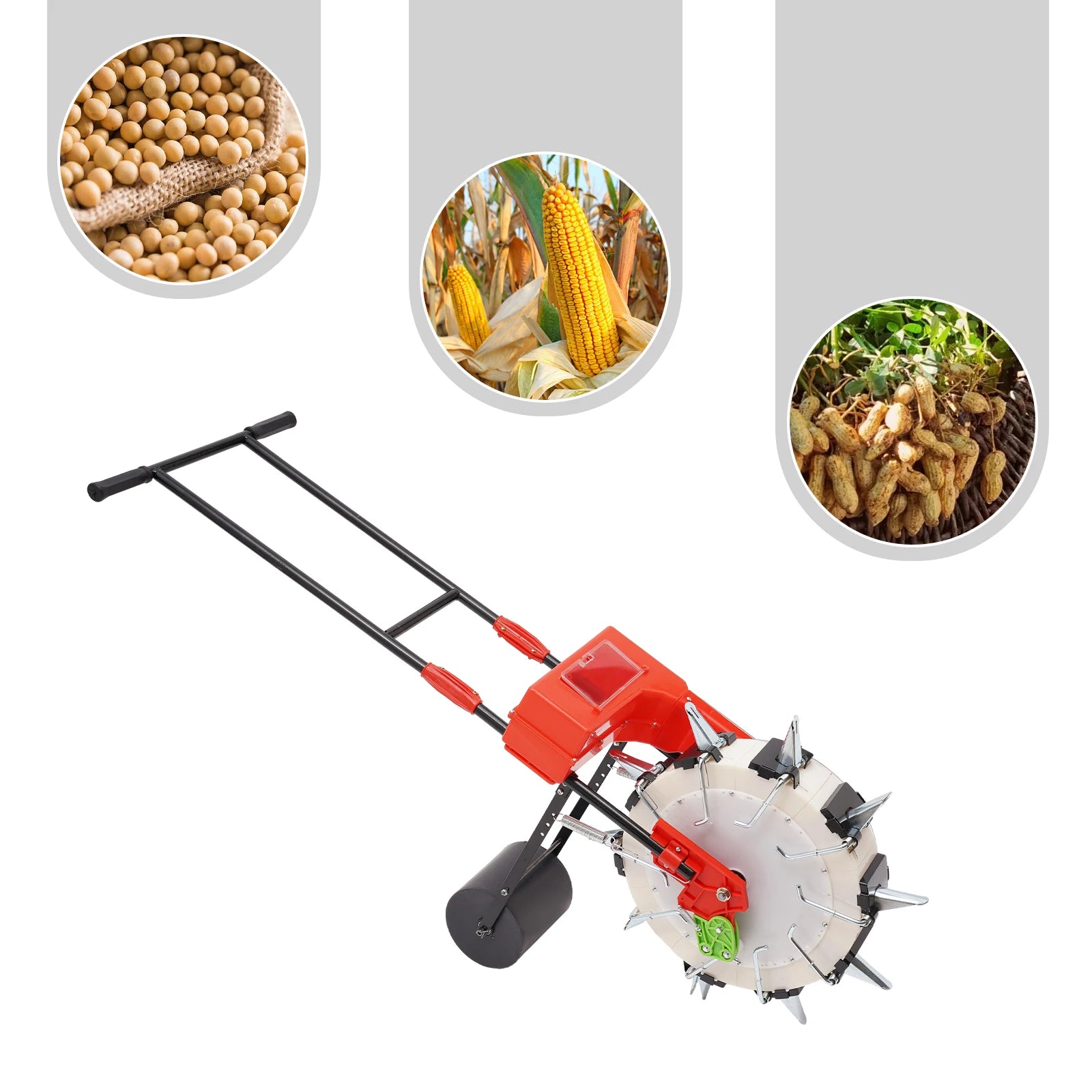 This product can be used on slopes, terraces, rice planting fields, mountains, hills, plains, orchards, greenhouses, vegetable plots, arid areas and small fields for sowing seeds from 0.12 to 0.59 inches including corn, soybeans, peanuts, mung beans, cotton, soybeans, and sunflower seeds.