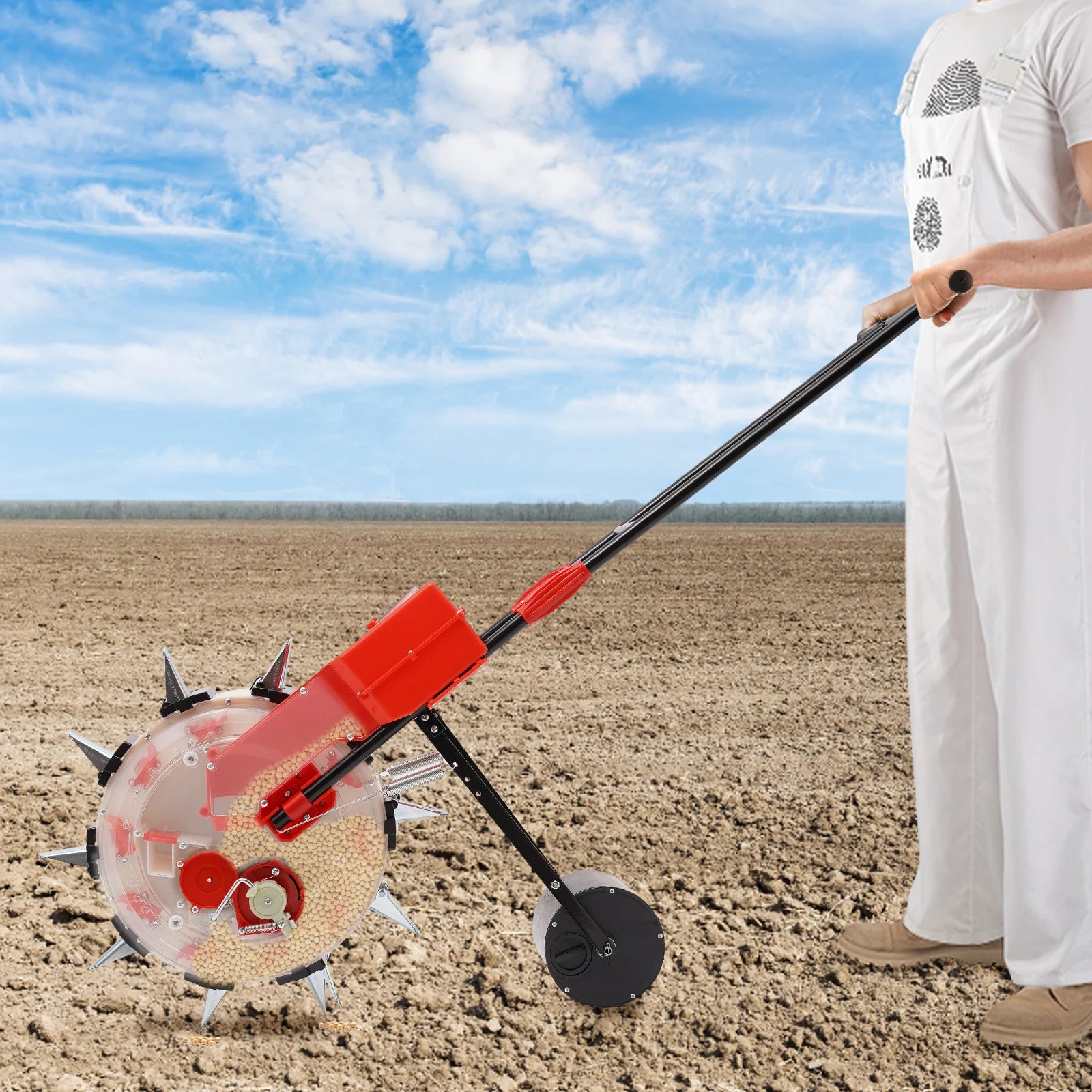 2.Please note that you cannot push this product backwards for seeding, when sowing seeds, pay attention to the height of the handle and the ground to ensure that the angle of inclination is neither too big nor too small.