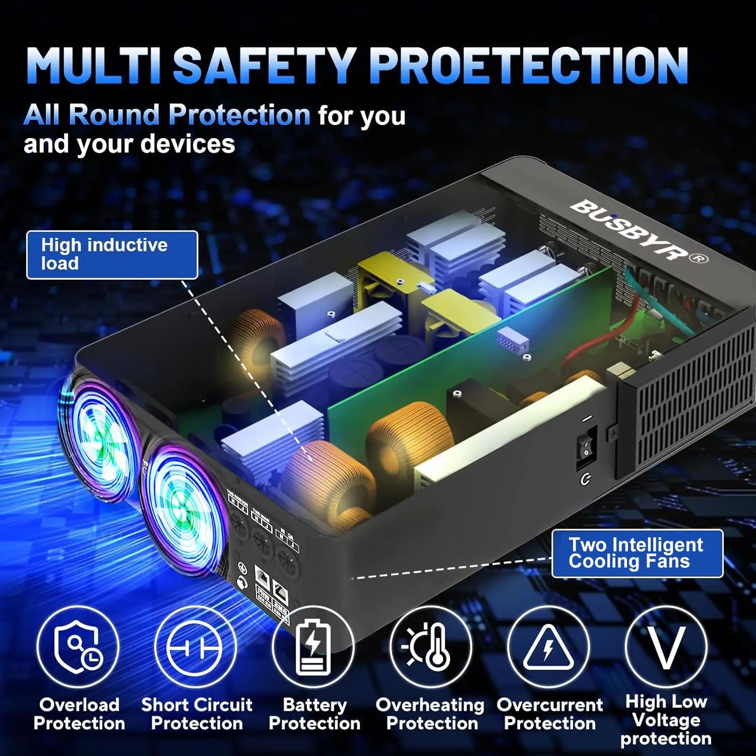 3600W Hybrid Solar Inverter 24V DC to 110V AC Pure Sine Wave With 120A MPPT Charge Controller PV 60-500V Solar & Generator Input