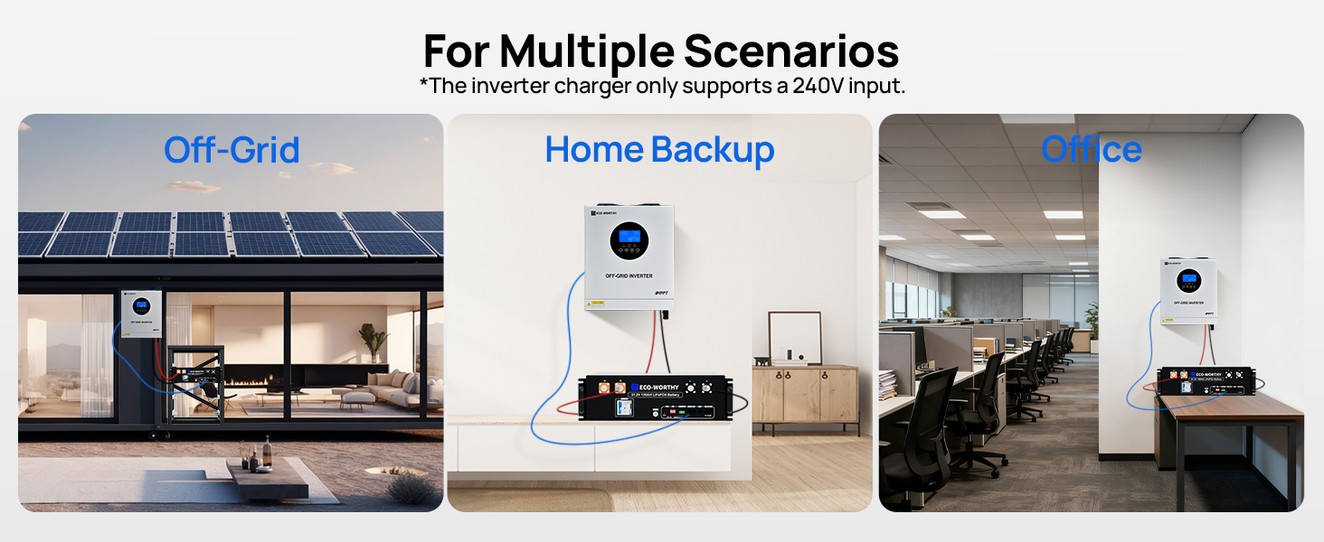 5000W Solar Hybrid Inverter 48V DC-120V/220V Pure Sine Wave Power Inverter AC Split Phase Off-Grid System